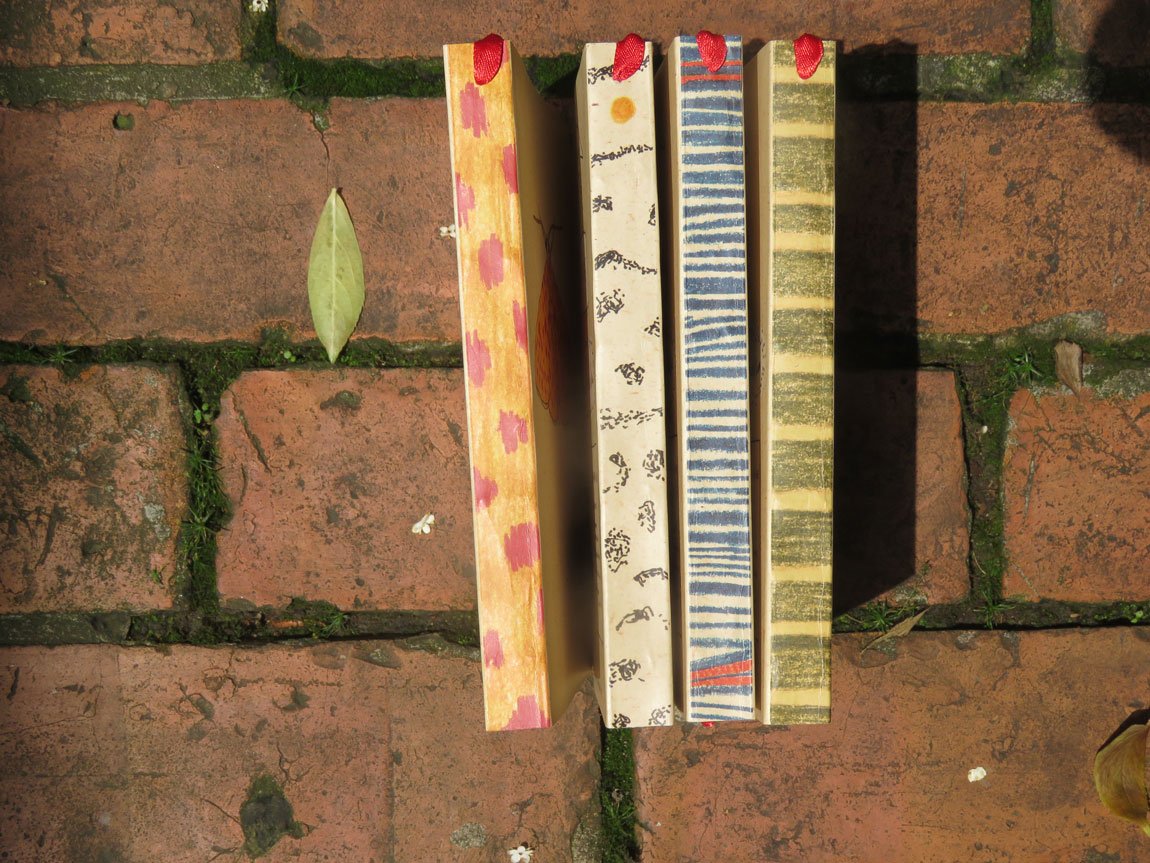 Cuadernos papel 90grm., 0% químicos, 100% caña, 192 pág., color crema clarito natural del papel. Opción con el papel interno en blanco o con punticos. Encuadernación rústica (portada semi dura), cosida con hilo y al final una técnica a mano que es muy buena para que sean muy requete muy cómodas para dibujar y escribir.